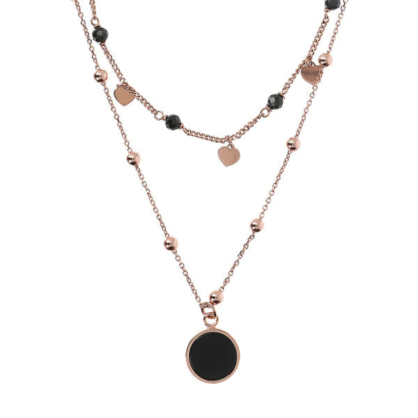 The two strand necklace with natural stones and hearts in Golden Rose is the perfect piece of jewelry to complete all your outfits and not go unnoticed. Original and romantic, this bijoux combines the warm, embracing tones of Golden Rose, Bronzallure's proprietary 18kt rose gold plated alloy, with the vibrant tones of semiprecious stones. Pair the necklace with coordinating earrings or other bijoux from the collection.