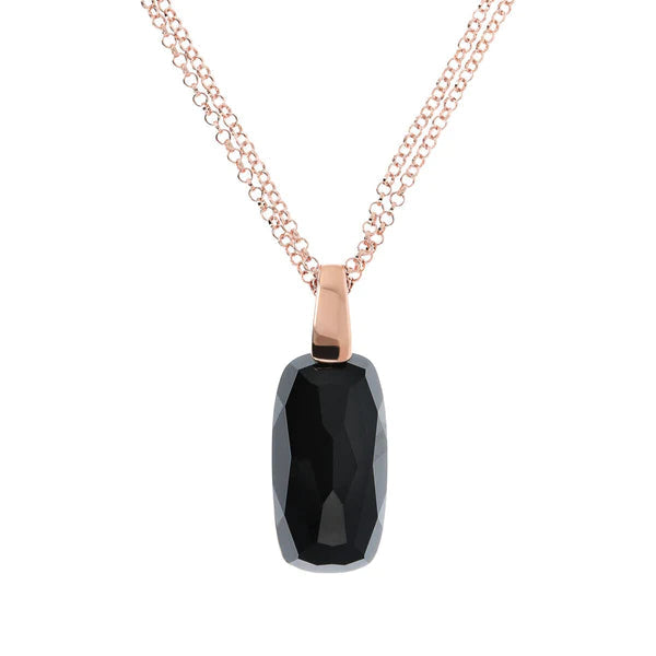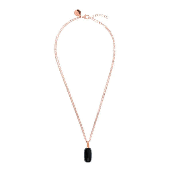 Golden Rose and natural stone scrabble necklace is the result of the best made in Italy. The pendant, in your choice of black onyx, red quartzite and denim blue, complements an 18k rose gold plated double chain. Pair it with the other jewelry in the collection and complete the set.