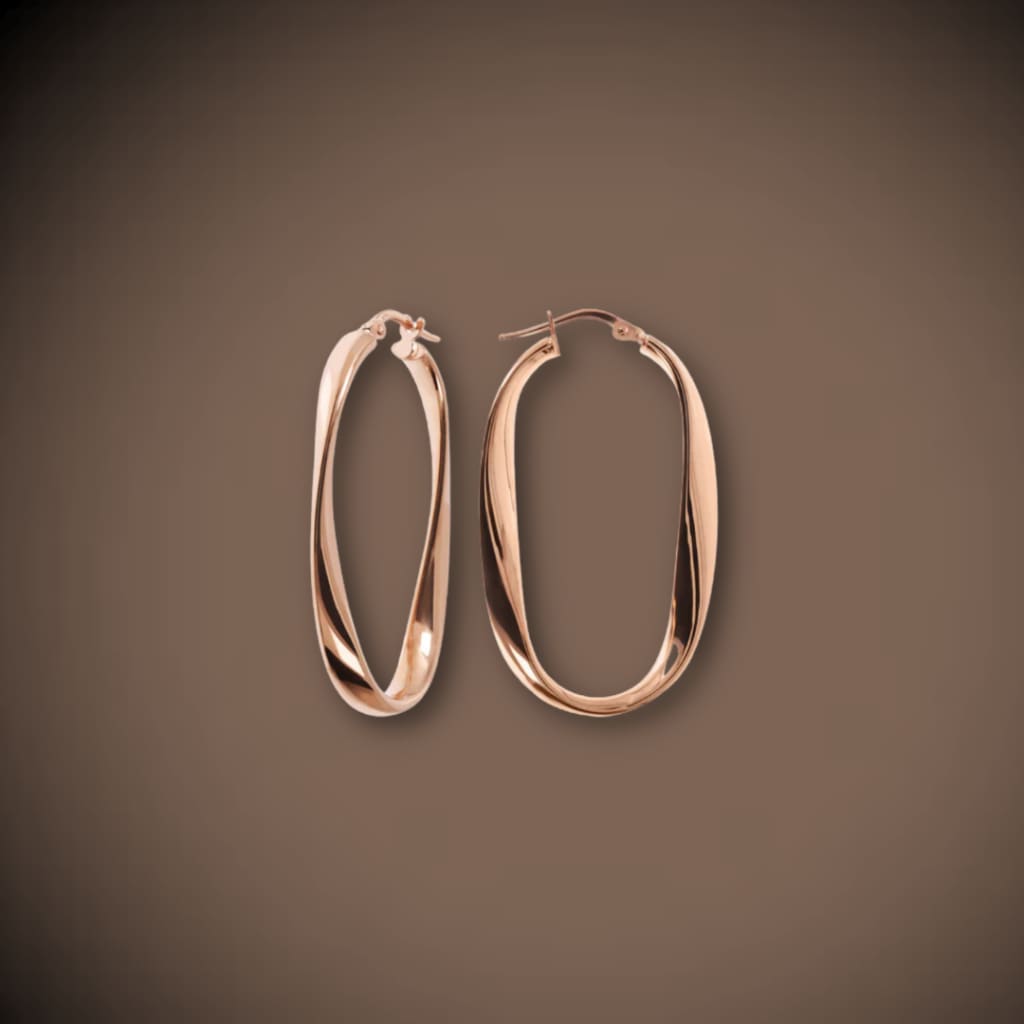 Twisted hoop earrings, fruit of the best Italian manufacture. A Golden Rose 18K rose gold plated jewel: an ideal gift for her and a basic bijou for your collection. Match them with necklaces, bracelets and rings of Purezza collection.