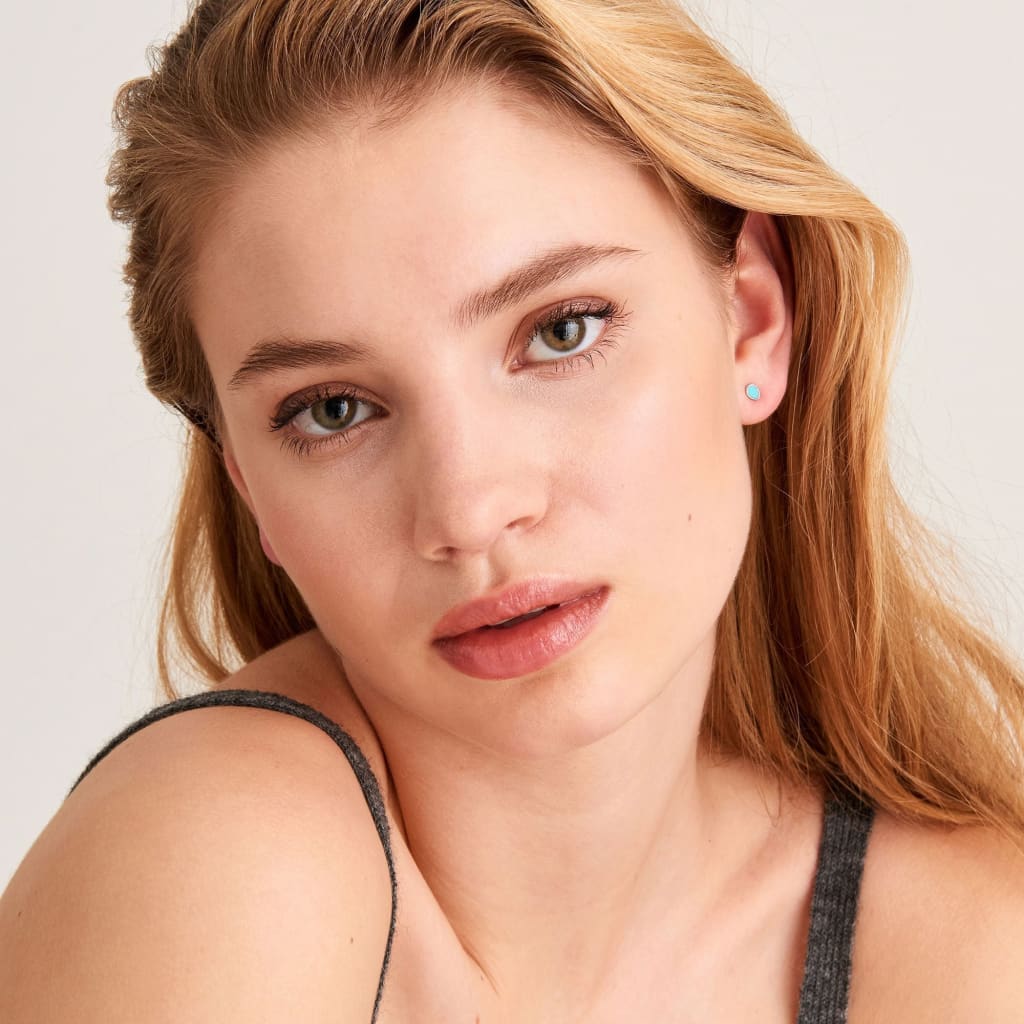 Making simple studs a thing of the past, our Tidal silver studs balance everyday wearability with ultimate cool. A smooth and uniquely asymmetric shape, theyâre finished with a stunning turquoise central stone for just enough colour to complete your look. Perfect for spring/summer â21. Let them speak for themselves or layer them up with coordinating hoops for your own unique stack. Our Silver Tidal Turquoise Stud Earrings are also available in gold with abalone.