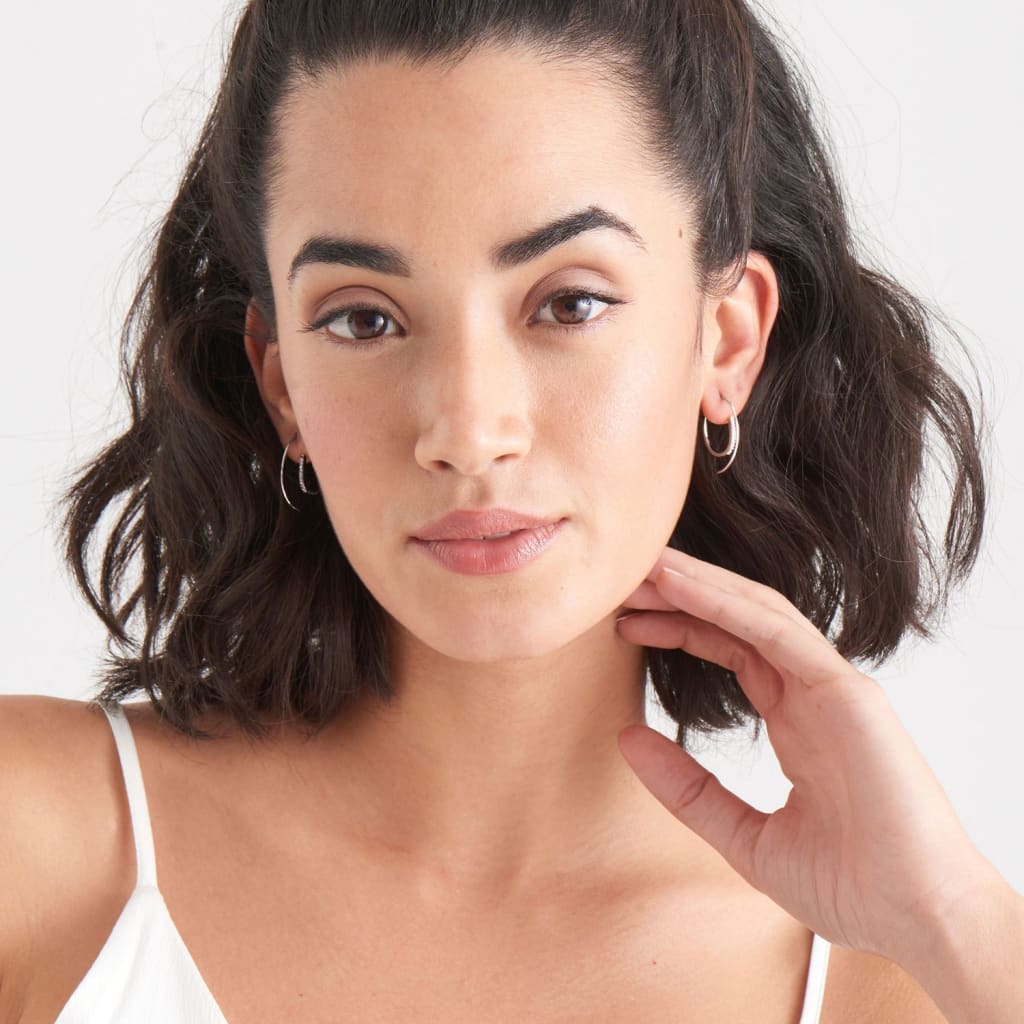 A twist of elegance and glamour, these glide-through silver earrings with sparkling cubic zirconia stones that glisten in the light are the perfect pair for that daytime to evening transition. Our Silver Twist Through Sparkle Earrings are also available in gold.