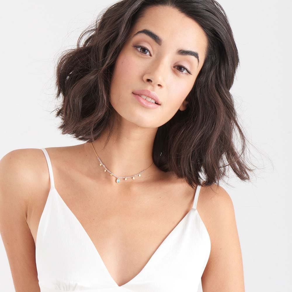 Give your outfit the perfect finishing touch with this statement turquoise and labradorite gold necklace. This unique piece will be the perfect addition to your jewellery box.Our Turquoise Labradorite Gold Necklace is also available in silver.